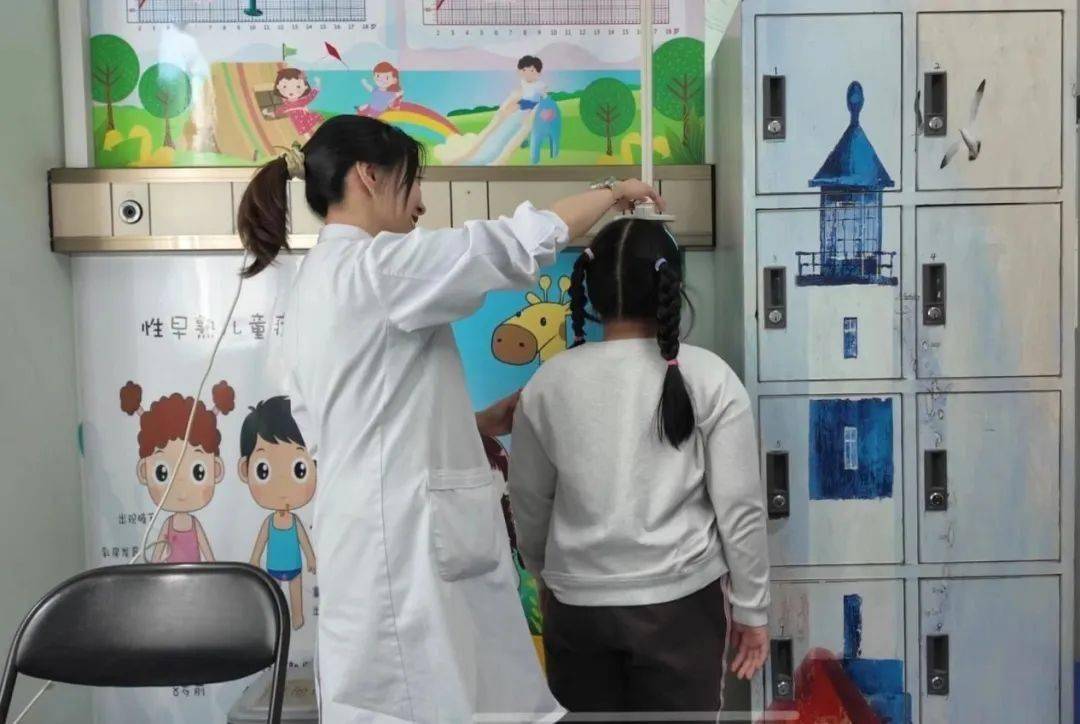 宣武医院儿科主治医师刘宇正在为前来就诊的小朋友测量身高(拍摄时已征得监护人同意)