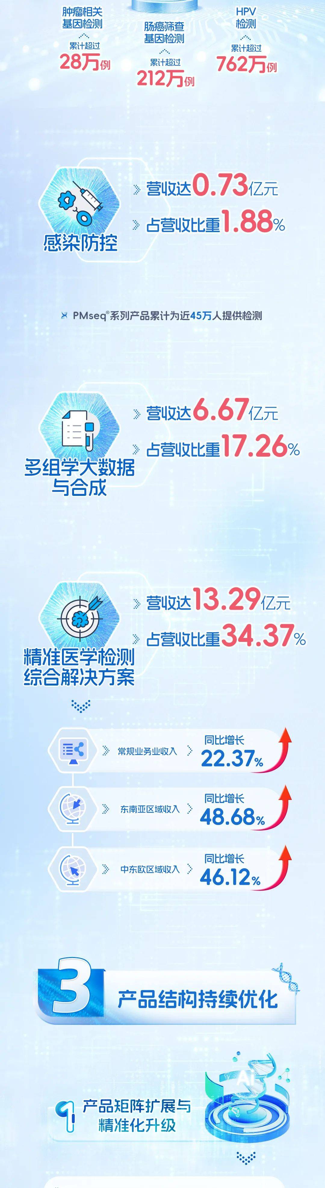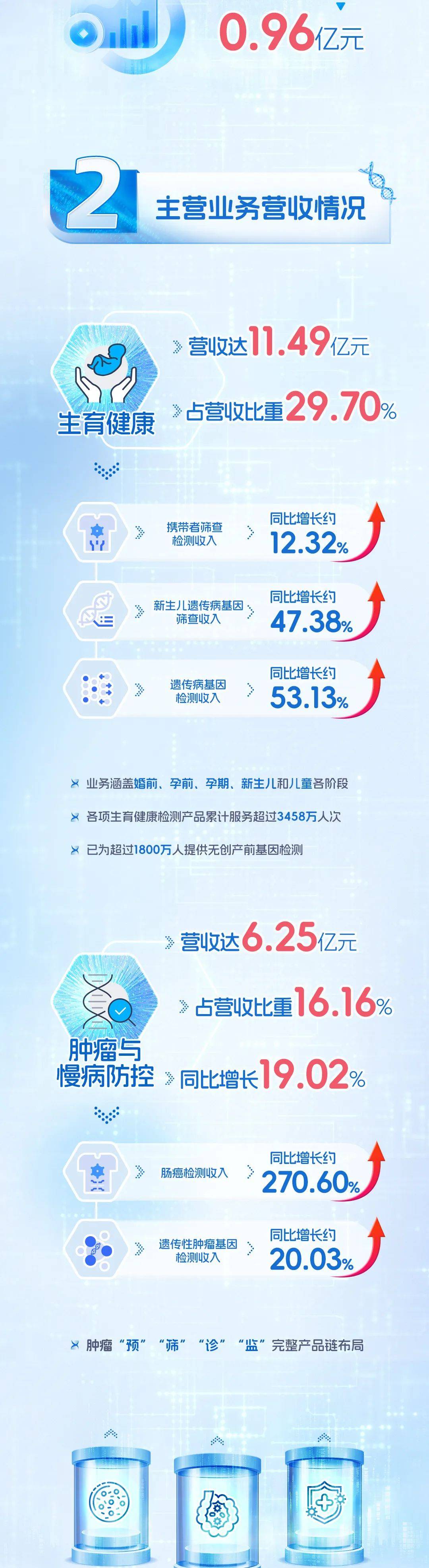 公司主营业务为通过基因检测、质谱检测、生物信息分析等多组学大数据技术手段,为科研机构、企事业单位、医疗机构、社会卫生组织等提供研究服务和精准医学检测综合解决方案。华大基因以推动生命科学研究进展、生命大数据应用和提高全球医疗健康水平为出发点,基于基因领域研究成果及精准检测技术在民生健康方面的应用,致力于加速科技创新,守护人类卫生健康共同体,抑制重大疾病对人类的危害,以减少出生缺陷,加强肿瘤防控,精准治愈感染,推行慢病防控,助力精准医学。