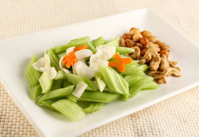 西芹200克、鲜百合50克、核桃仁20克、橄榄油少许