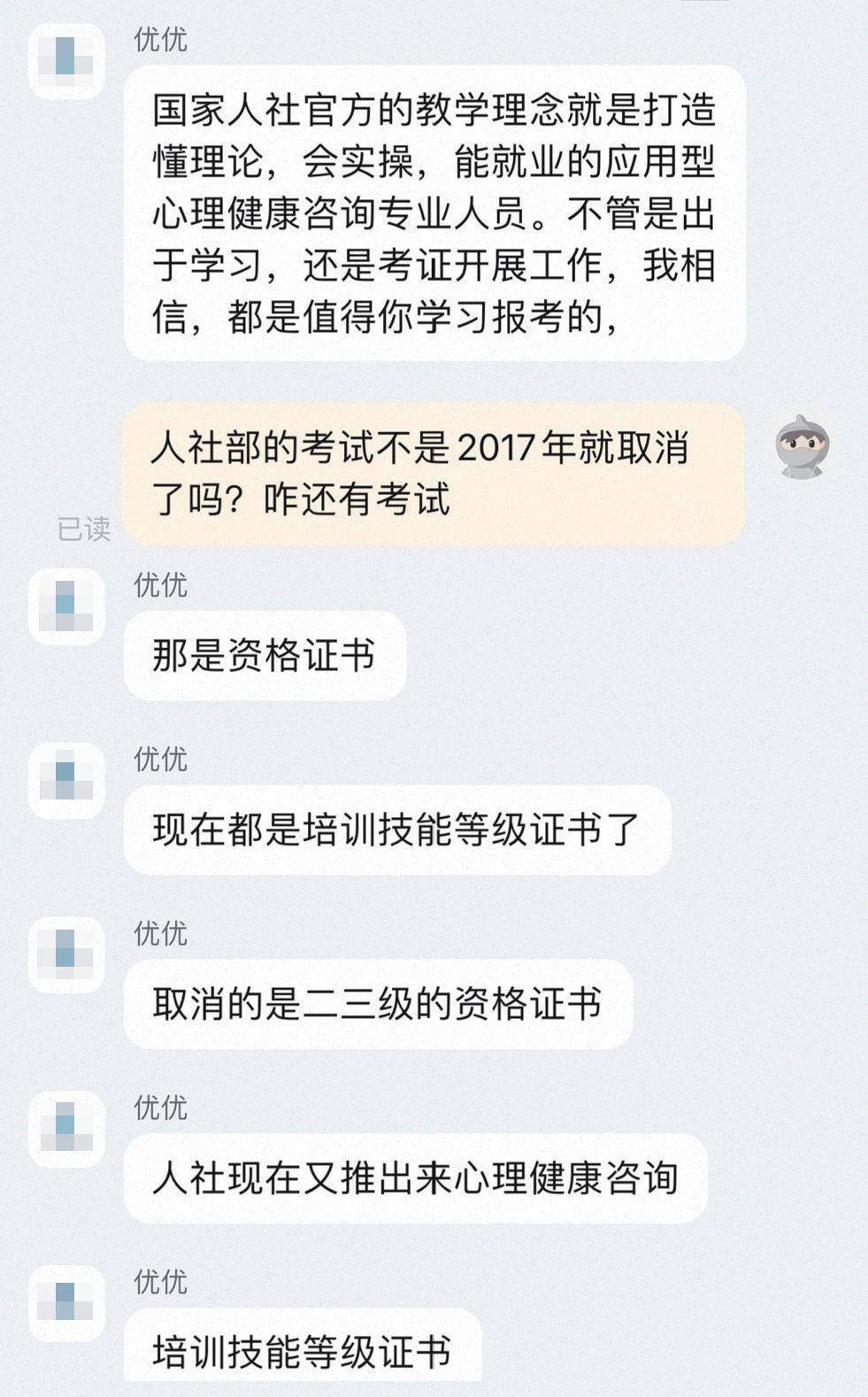 实际上,目前心理咨询师既没有国家统一认证,也没有省级人社部门认可的职业技能等级评定。