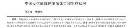 [1]陈万青,郑荣寿.中国女性乳腺癌发病死亡和生存状况[J].中国肿瘤临床,2015,42(13):668-674.