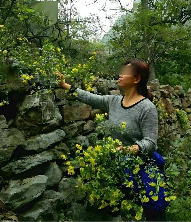 照片里李姐举着竹篮站在山崖边,金灿灿的野菊旁混着几株锯齿叶片的植物。