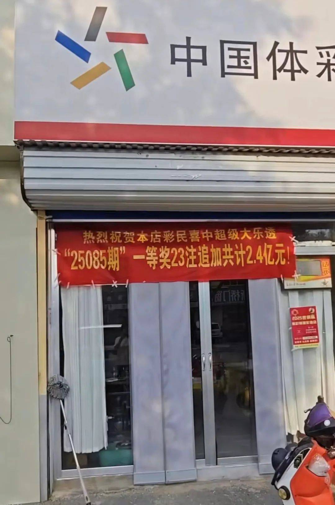 据红星新闻报道,近日,有消息称,7月28日,山东淄博一家体彩店“25085期”超级大乐透开出2.4亿元大奖,店家挂横幅称“热烈祝贺本店彩民中超级大乐透,一等奖23注追加共计2.4亿元。”