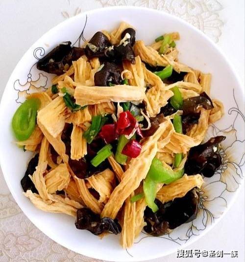 5. 加入腐竹和木耳:将焯过水的腐竹和黑木耳加入锅中,快速翻炒均匀。翻炒的过程中,火候不宜过大,以免食材过熟失去口感。