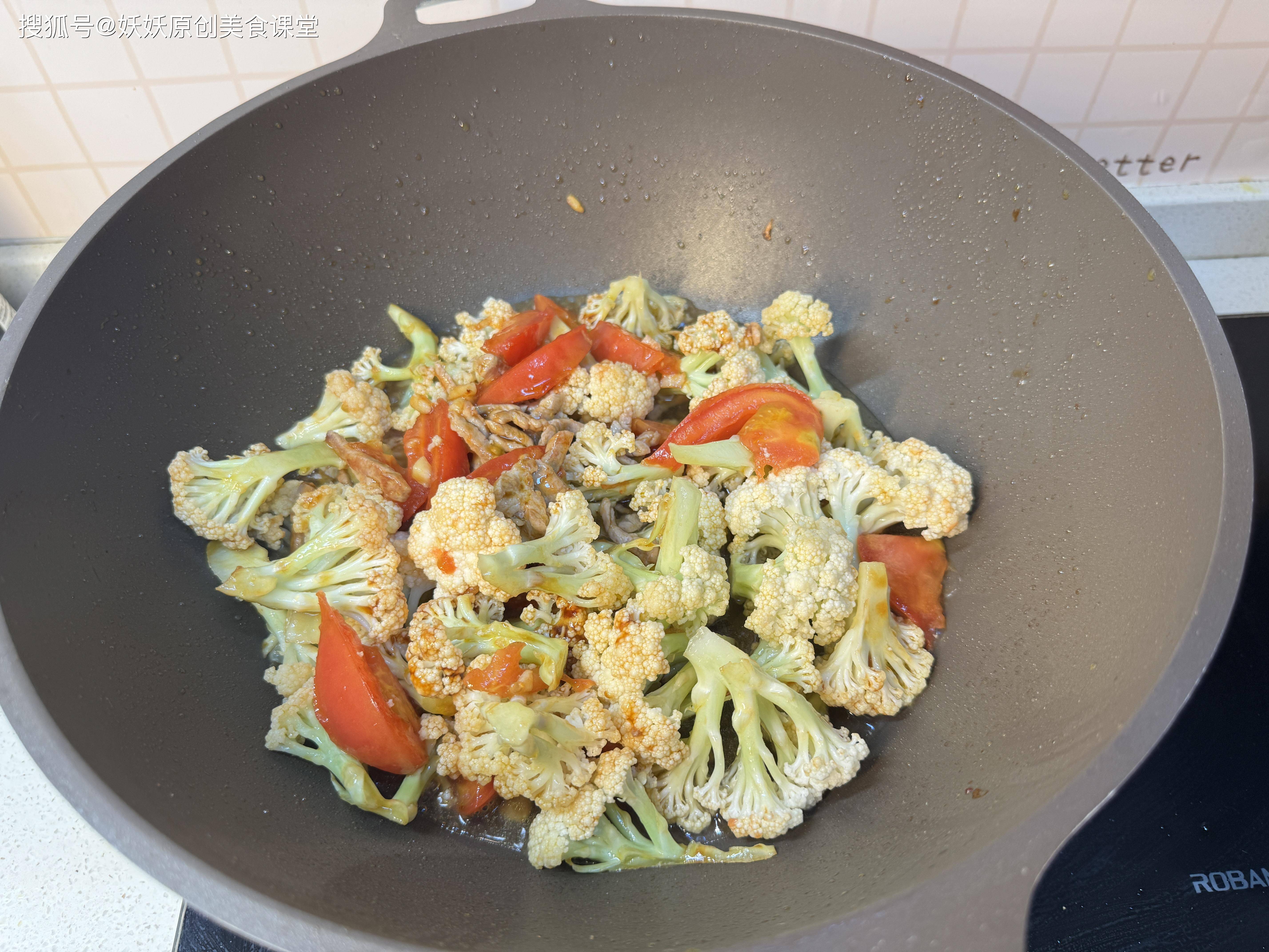 西红柿不但营养丰富,颜色也漂亮,用它搭配其它食物一起炒,不但外观上红扑扑的十分养眼,口感也是酸酸甜甜巨好吃,花菜和里脊肉都是低热量的食物,三者搭配能碰撞出完全不一样的味道。