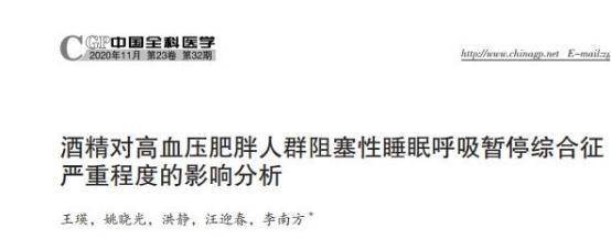 [1]王瑛.酒精对高血压肥胖人群阻塞性睡眠呼吸暂停综合征严重程度的影响分析,中国全科医学,2020-08-19