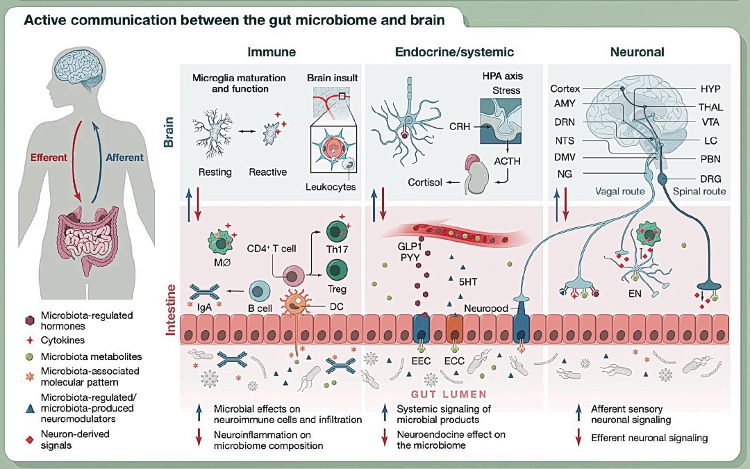 这些研究表明,肠道和大脑之间存在双向交流途径,大致可分为四大类。