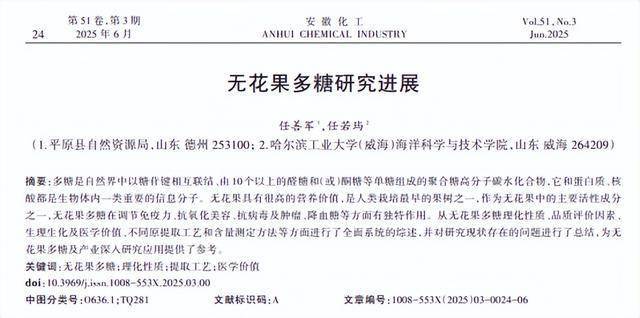 无花果多糖研究进展,任善军;任若玙,安徽化工,2025-06-15