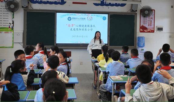 为守护青少年心理健康,赋能青春成长,10月11日,我院春芽心理健康志愿服务团队走进简阳市射洪坝水东小学,为莘莘学子带来了一场题为《与情绪共舞,与压力同行》的精彩心理科普讲座。此次活动旨在将专业的心理知识转化为青春期的“心灵养分”,帮助学生们科学管理情绪,积极应对压力。