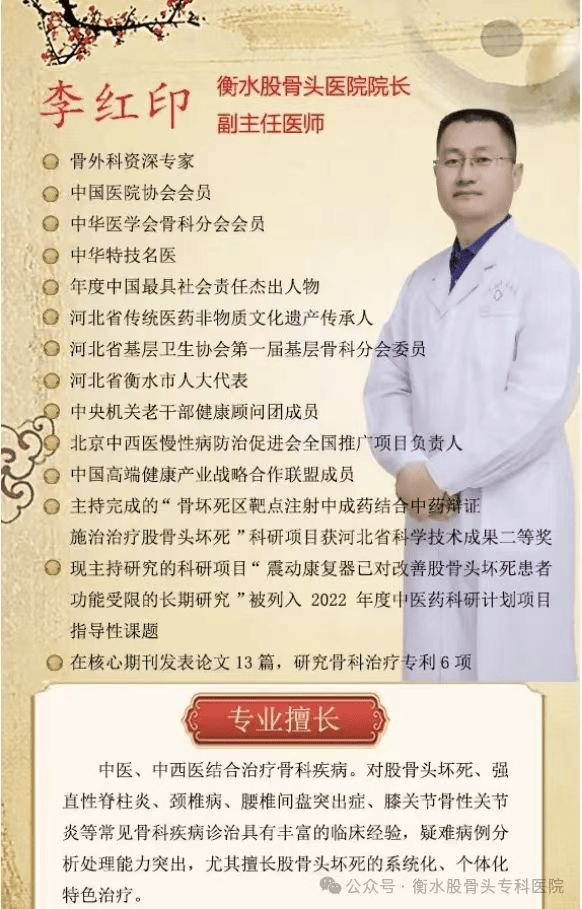 在现代医学不断发展的背景下,传统中医药逐渐走入疼痛管理的前沿。衡水股骨头医院经过二十年的实践,专注于股骨头坏死的保守治疗,尤其是通过中药结合骨内注射来缓解患者的疼痛。这一创新方法不仅充分利用了中药的自然疗效,还为患者提供了个性化的治疗方案。同时,李氏三联疗法作为我们医院的核心技术,它结合了中医治未病的理念,通过多种手段处理疼痛问题,使得患者在治疗过程中体验到更灵活、更系统的方法。这样的跨界整合正在改变人们对疼痛管理的认知,实现了传统与现代医学的有效对接,为众多患者带来了新的希望和选择。