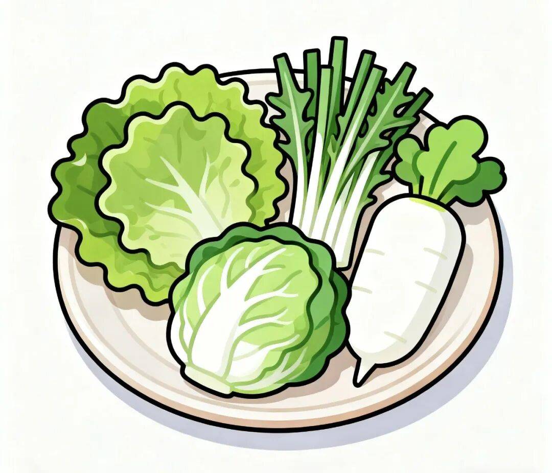 · 绿:指各种新鲜蔬菜。大部分蔬菜都是低嘌呤的“安全牌”,如生菜、油麦菜、白菜、萝卜、冬瓜等。它们不仅能增加饱腹感,还有助于碱化尿液,促进尿酸排泄。
