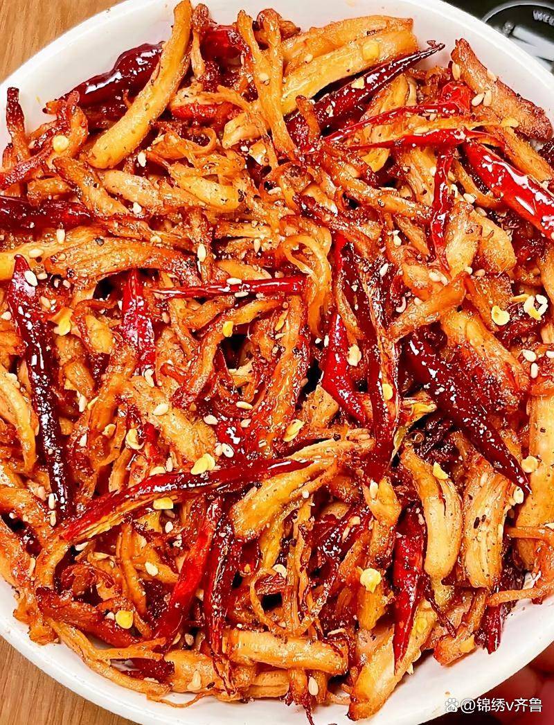 2. 爆香调料:热油爆香干辣椒和蒜末。