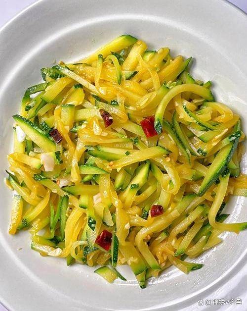 食材:嫩南瓜1个、干辣椒3个、蒜末1勺。