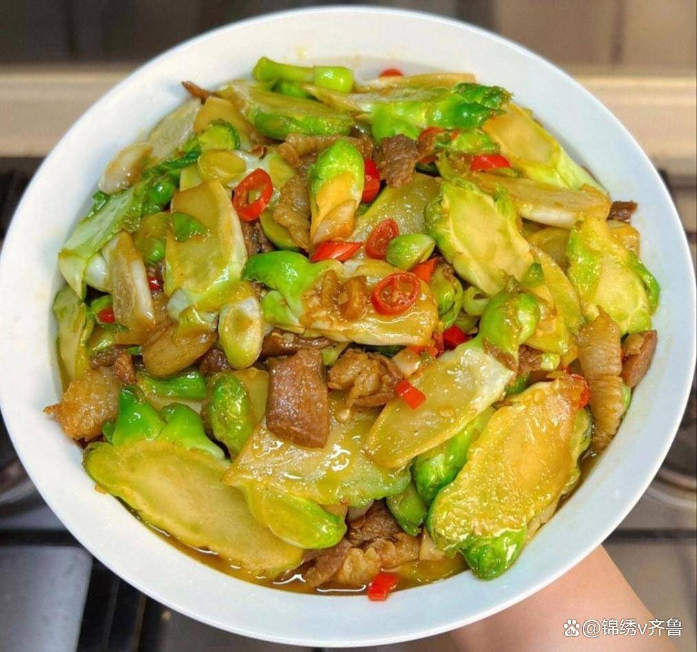 8. 出锅装盘:将炒好的儿菜腊肉盛出装盘,即可享用。