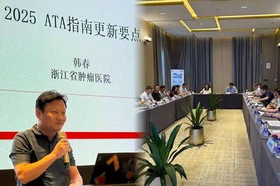 浙江省肿瘤医院甲状腺外科韩春教授首先做了题为《2025 ATA分化型甲状腺癌指南更新解读》的精彩汇报。他系统梳理了四大核心更新内容:肿瘤最大径相关内容、主动监测适应证、手术部分与DATA框架的完善,整场解读紧扣指南更新要点,为临床实践提供清晰指引。谢磊教授担任主持。