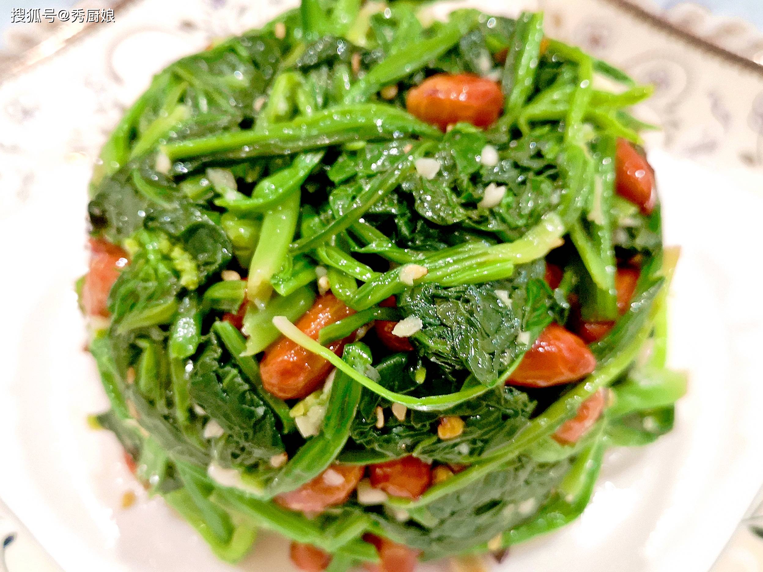 秋天的菠菜特别嫩,铁含量高,能帮助增强体力。菠菜生长快,农药残留少,凉拌着吃最爽口,配上油炸花生米,口感丰富又下饭!