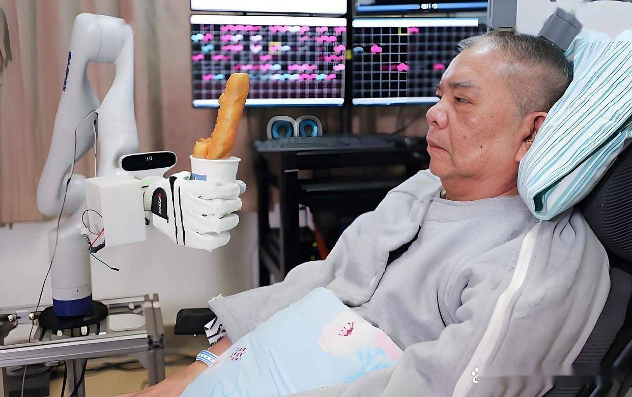 对于渐冻症患者而言,自主进食的意义远超出营养摄取本身。随着病情发展,患者逐渐丧失对肌肉的控制能力,包括吞咽功能在内的基本生理活动都变得困难重重。脑机接口技术不仅解决了吞咽困难、肢体瘫痪等生存困境,更通过完成"自主进食""戴帽子"等日常动作,赋予了患者对身体的掌控感。