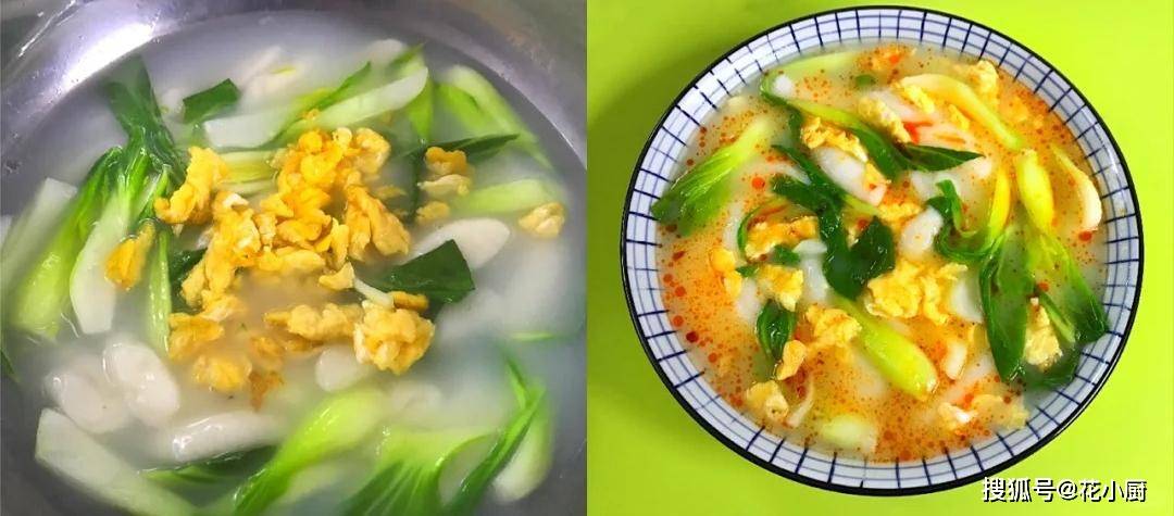 4、起锅烧油,油不用放太多,把搅拌好的鸡蛋液倒进锅里。这时候你就看着鸡蛋液在锅里慢慢凝固,等它差不多凝固了,就拿铲子把它划散,盛出来放在一边待用。5、锅里的鸡蛋盛出来了,咱往锅里倒上适量的水,开大火让水烧开。等水咕噜咕噜冒泡的时候,把切好的糍粑条放进锅里。这糍粑一下锅,水就不那么沸腾了,等水再次煮开,就把切好的青菜也放进去。这时候拿铲子在锅里翻拌几下,让青菜和糍粑都能充分地吸收水分。接着往锅里加点盐,调调味。这盐的量自己掌握,喜欢咸一点的就多放点,口味淡的就少放一点。