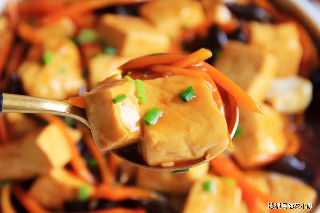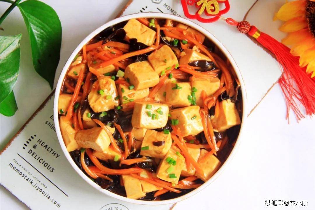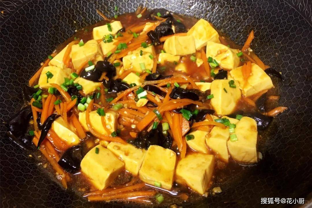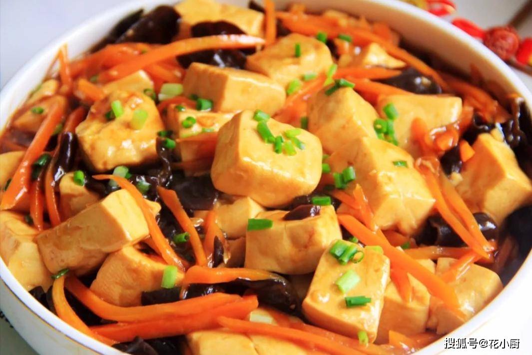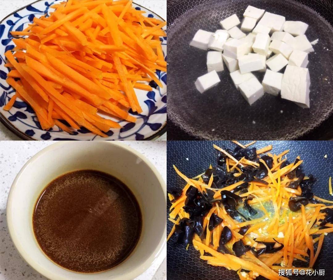 食材:嫩豆腐、木耳、胡萝卜、葱、大蒜