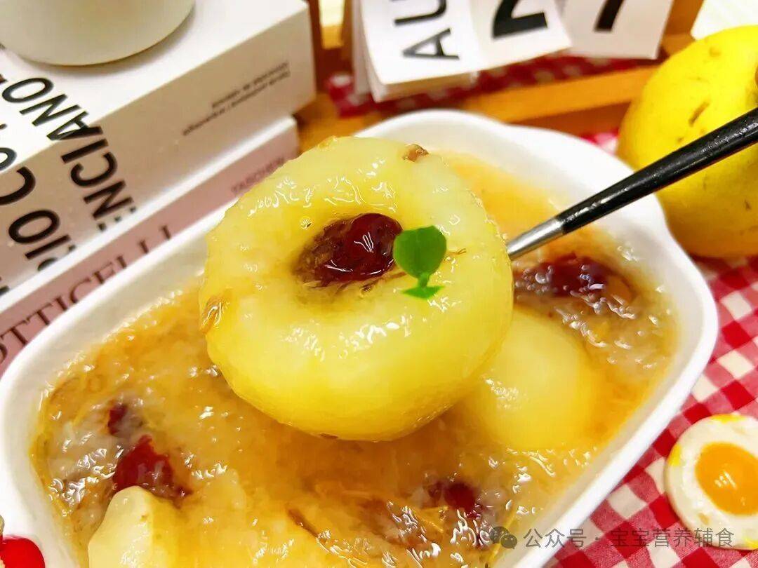 喜欢口感好,啃着炖梨吃的可以像我这样,从中间给梨核取出来。