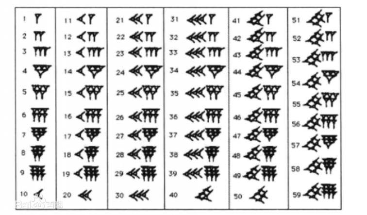 此外,古巴比伦记数法使用了一组几何符号来表示数字。例如,三角形代表3,两个三角形代表6,三个三角形代表9。这些符号便于记录,可以刻在石板或泥板上。