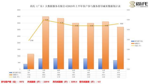 【2025年10月·广州市黄埔区】《2025年2—8月客户参与与平均减重统计图(连续追踪样本,N=5072)》供图:尚氏大数据后端服务组