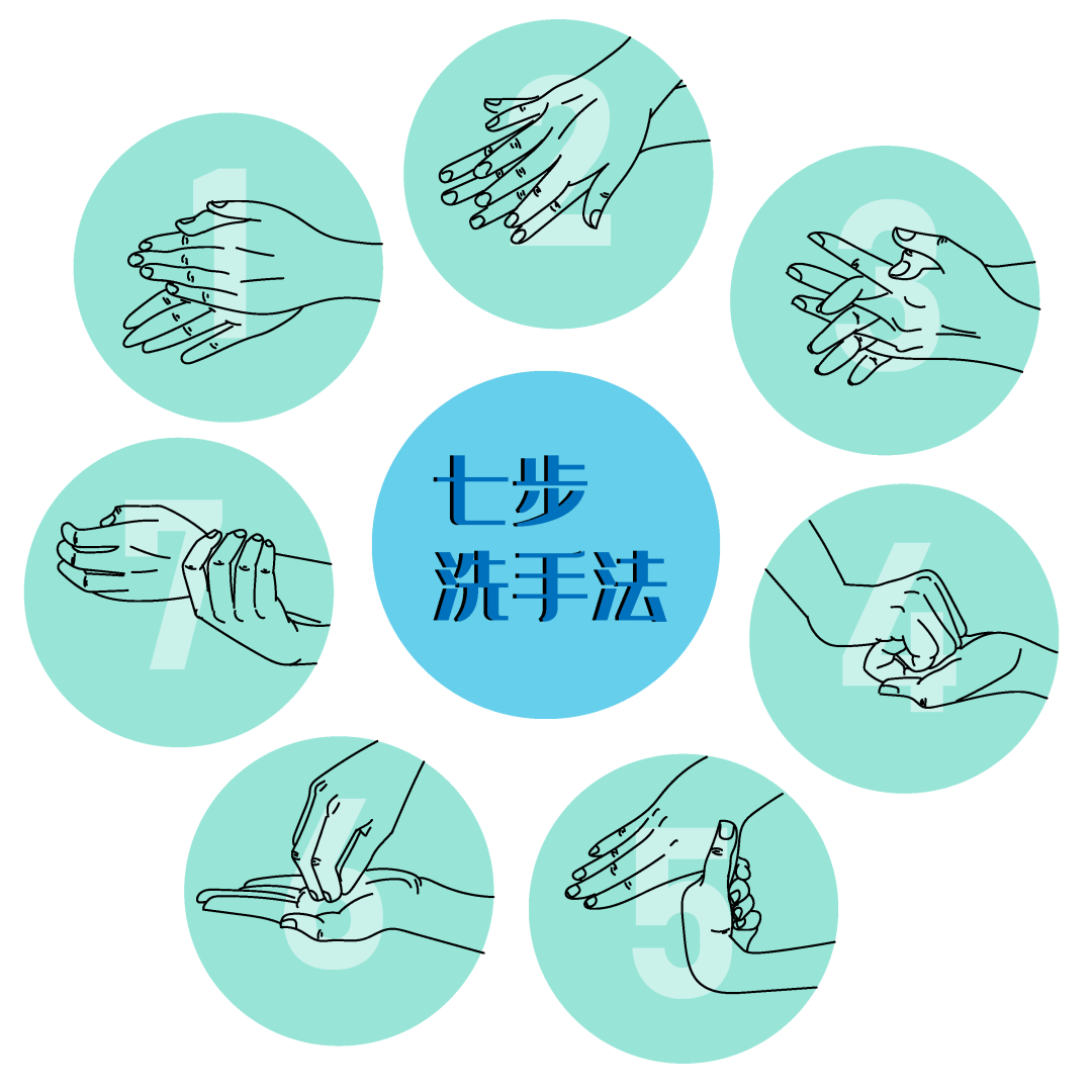 饭前便后、准备和加工食物前、接触公共物品后都必须洗手。使用肥皂(或洗手液)和流动水对诺如病毒清除效果好,按照“七步洗手法”认真冲洗至少20秒。诺如病毒对酒精不敏感,免洗洗手液效果不佳。