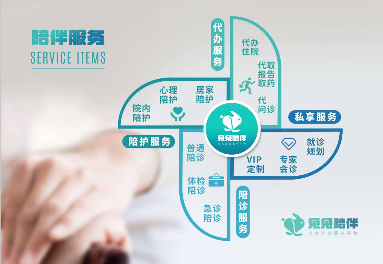 兔兔陪伴是一家专注于全生命周期健康管理的健康陪诊服务平台,以“精准匹配 简单就医”为核心理念,通过整合线上线下资源,平台搭建起患者与专业陪诊人员的高效链接桥梁,提供便捷、专业、贴心的全流程陪诊服务及全方位健康管理解决方案。