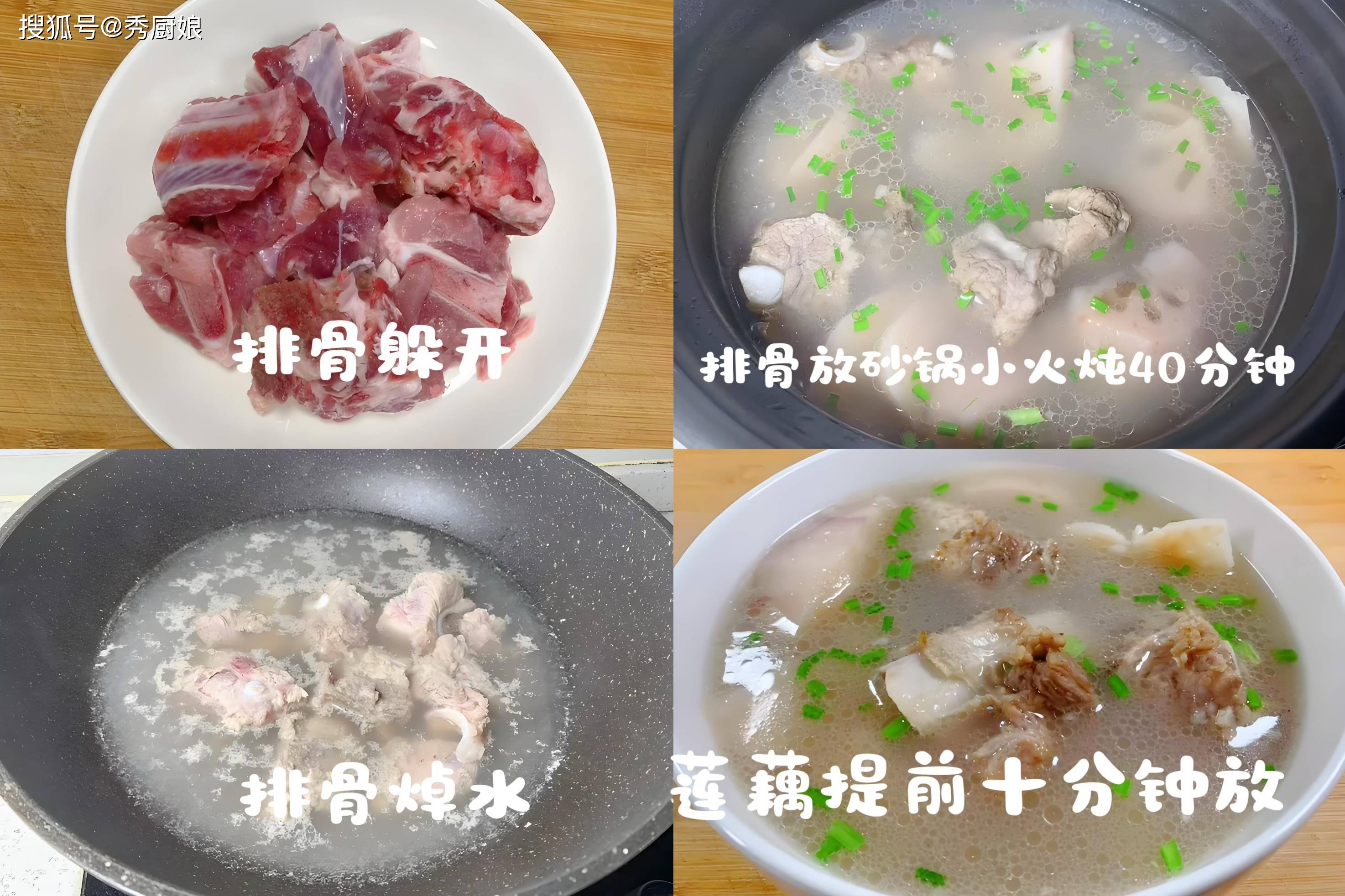1. 排骨洗净,冷水下锅,加几片生姜和料酒,煮开后撇去浮沫,捞出用温水冲净。