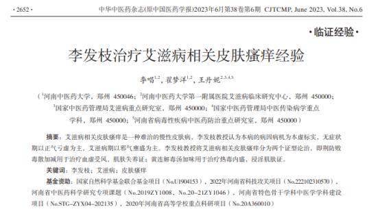 [1]李唱,翟梦洋,王丹妮.李发枝治疗艾滋病相关皮肤瘙痒经验[J].中华中医药杂志,2023