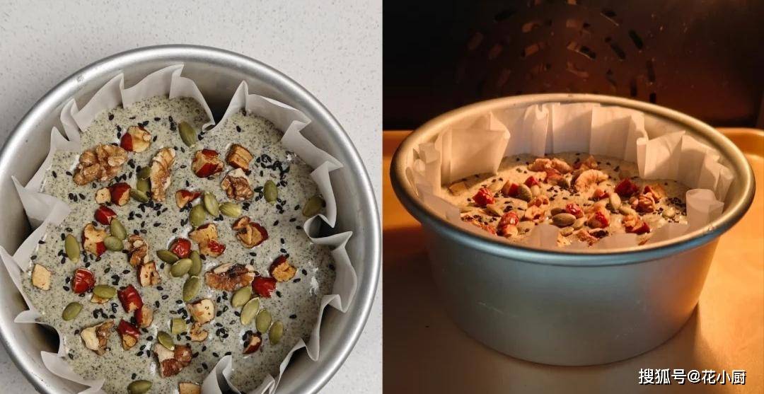 2、搅拌好之后,就到了发挥你创意的时候啦。你可以根据自己的口味,往糊糊里加入红枣碎、核桃碎,再撒上适量的黑芝麻。加了这些之后,蛋糕的口感和味道直接上了好几个档次。红枣甜甜的,核桃香香脆脆的,和蛋糕搭配在一起,简直是绝配。