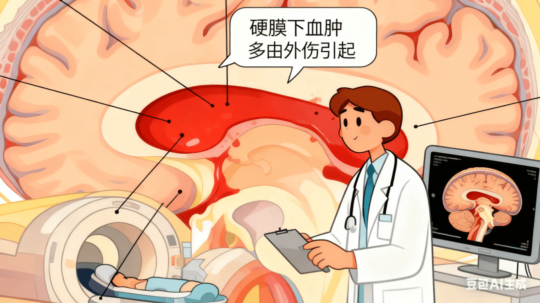 硬膜下血肿是颅脑损伤中最常见的一种类型,指血液积聚在硬脑膜与蛛网膜之间的潜在间隙中。举例来说,就像三明治里突然多了一层“血馅”,压迫大脑组织,引发一系列症状。