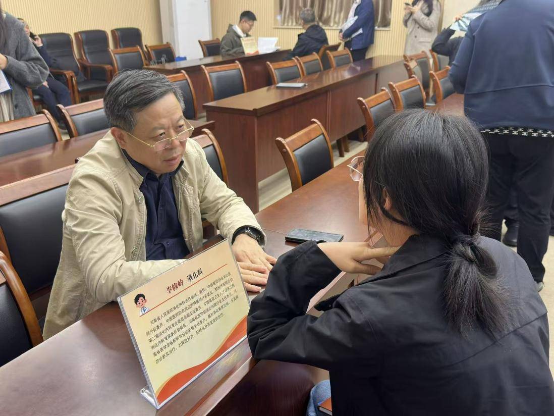 理论讲座结束后,备受期待的义诊环节随即展开。来自河南省人民医院首席专家、脊柱病中心主任医师高延征,消化内科主任医师、教授李修岭,全科医学科副主任、主任医师王勇,妇科计划生育亚专科主任、主任医师王英芳,呼吸与危重症医学科副主任医师张茜茜,以及健康管理学科主任医师朱娜、主治医师任中豪组成多科义诊团队,现场聚焦职工健康问题,将专业知识科普与贴心医疗服务相结合,为职工们提供了一对一的报告咨询、阅片诊断、号脉问诊等健康服务。
