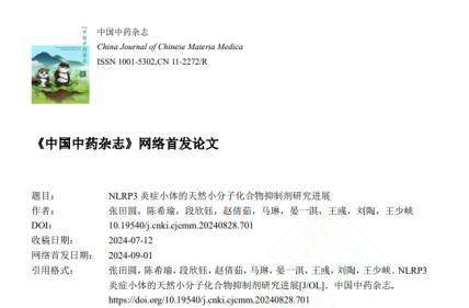 [1]张田圆,陈希瑜,段欣钰,等.NLRP3炎症小体的天然小分子化合物抑制剂研究进展[J/OL].中国中药杂志,1-15[2024-09-02].