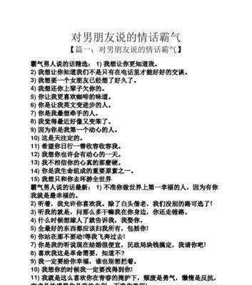 相信每个恋爱中的女生都会有这样的烦恼:如何让男朋友感受到自己的爱意?其实,用俏皮、甜蜜的情话表达自己的心意是个不错的选择。下面,就为大家分享15句俏皮情话,让你的男友欢喜不已。