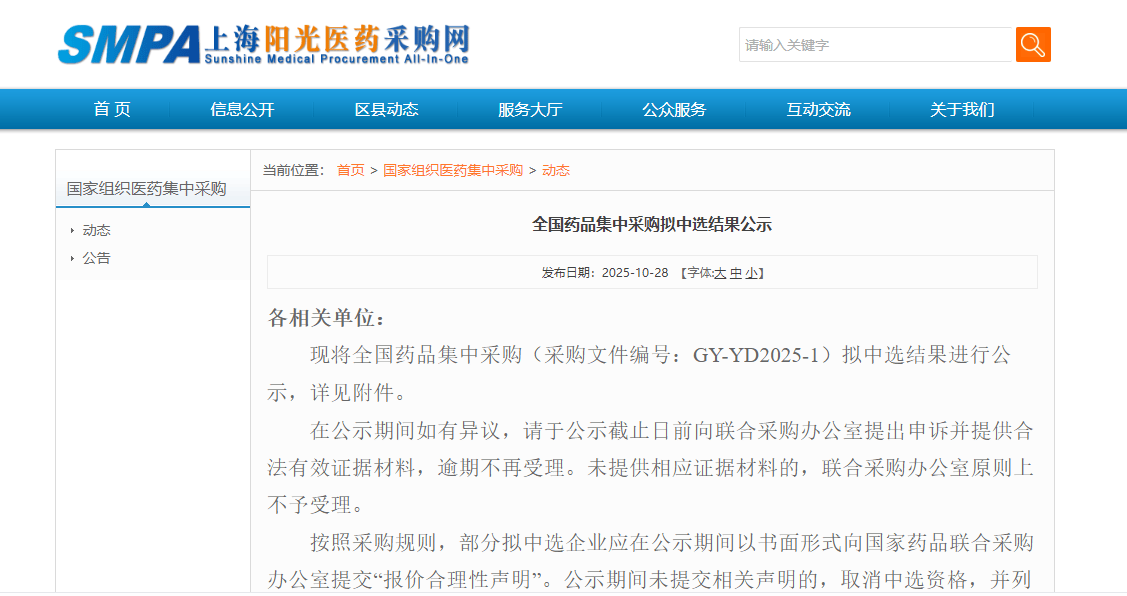 上海阳光医药采购网消息,2025年10月27日,国家组织药品集中带量采购产生中选结果。此次集采共纳入55种药品,覆盖抗感染、抗过敏、抗肿瘤、降血糖、降血压、降血脂、消炎镇痛等领域常用药品,全国共4.6万家医药机构参加报量,445家企业的794个产品参与投标,其中272家企业的453个产品获得拟中选资格。