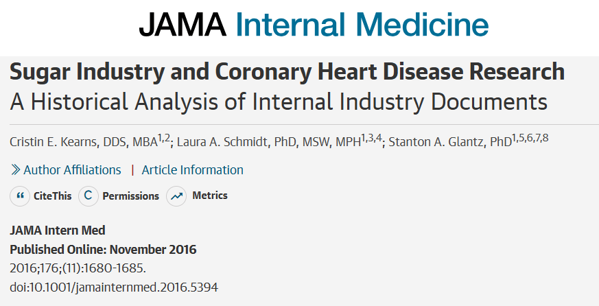 2016 年,来自加利福尼亚大学研究人员在查阅1960-1970年间国际糖业研究基金会的内部文件,以及当时对糖脂的历史报告,并整理成叙事性案例研究,发表在《美国医学会期刊:内科学》上。