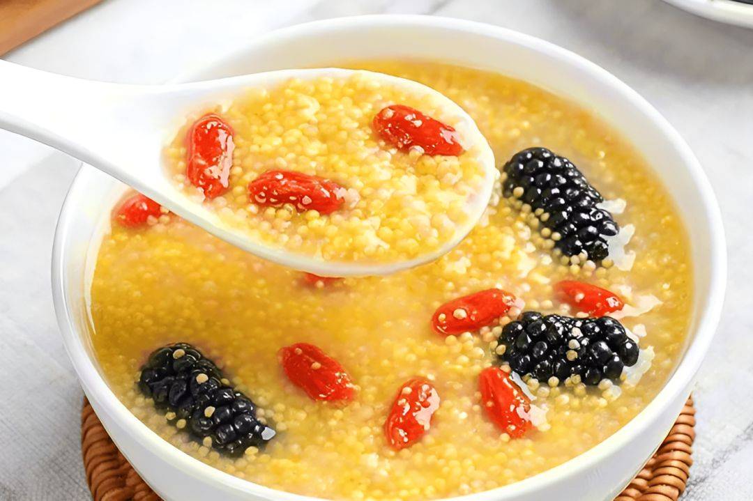 1.将小米洗净,加入清水煮15分钟,煮至小米开花便可