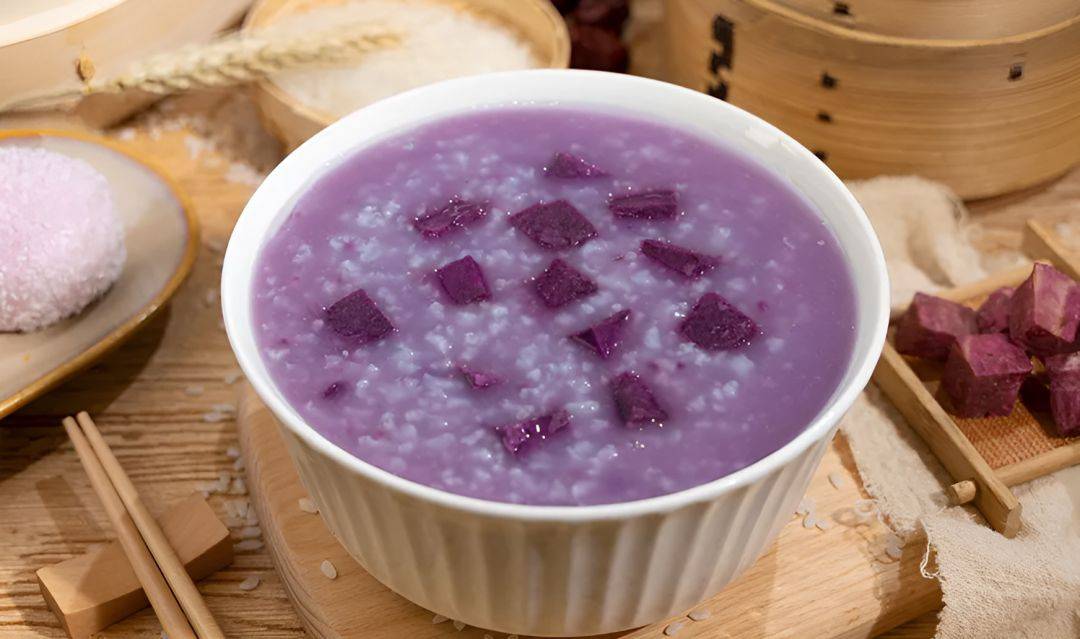 粥煮得极为软烂,紫薯自带自然甜味,食用起来颇为惬意,一回便能补充充足花青素