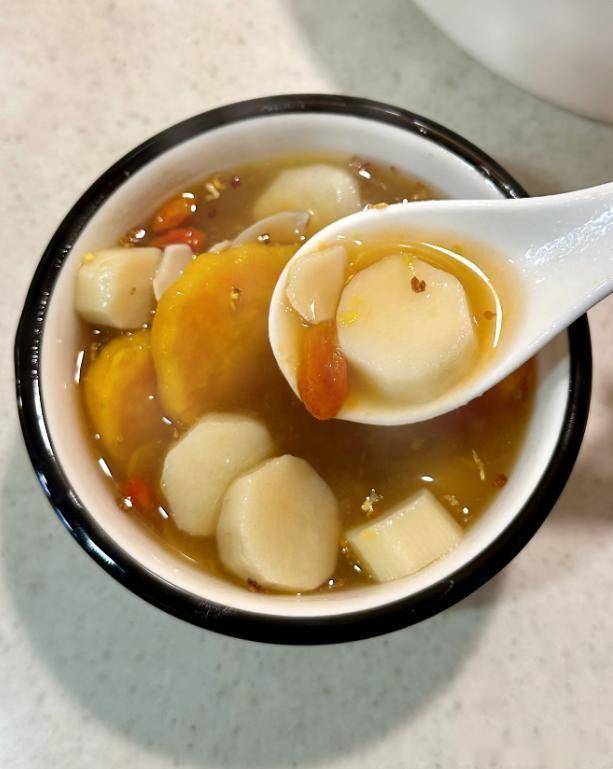 材料:适量山药,适量山药,适量百合,红糖,枸杞,水淀粉。