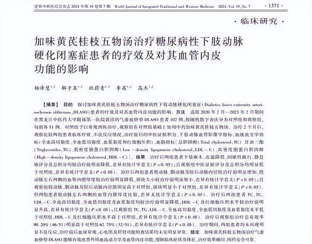 [1]杨泽慧,加味黄芪桂枝五物汤治疗糖尿病性下肢动脉硬化闭塞症患者的疗效及对其血管内皮 功能的影响.2024-07-28
