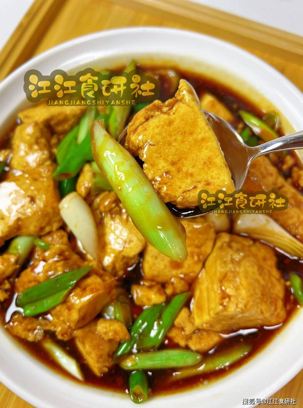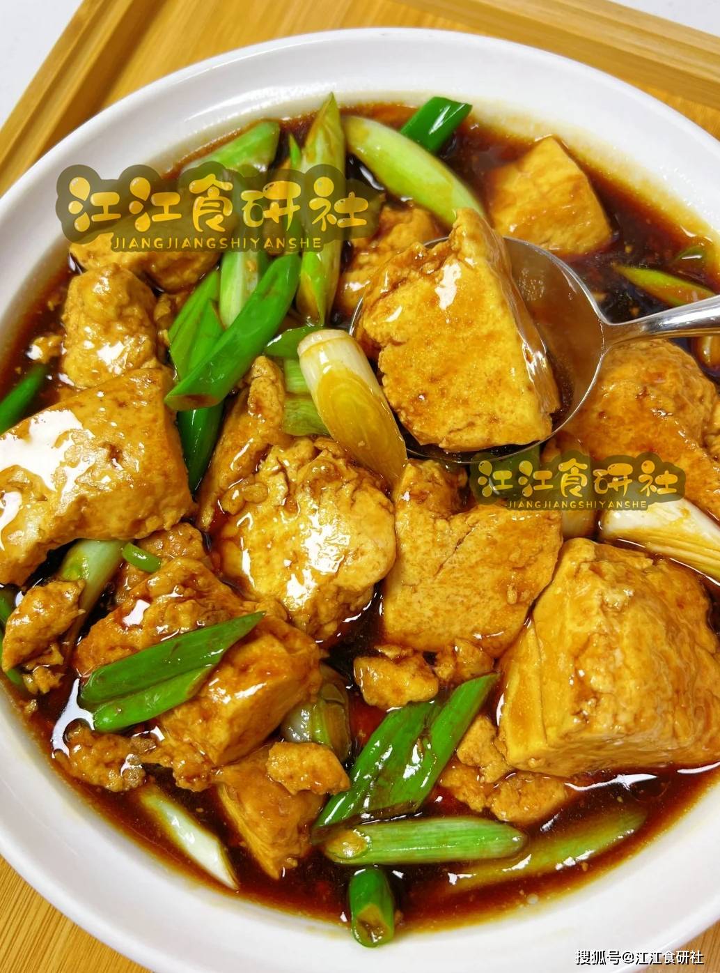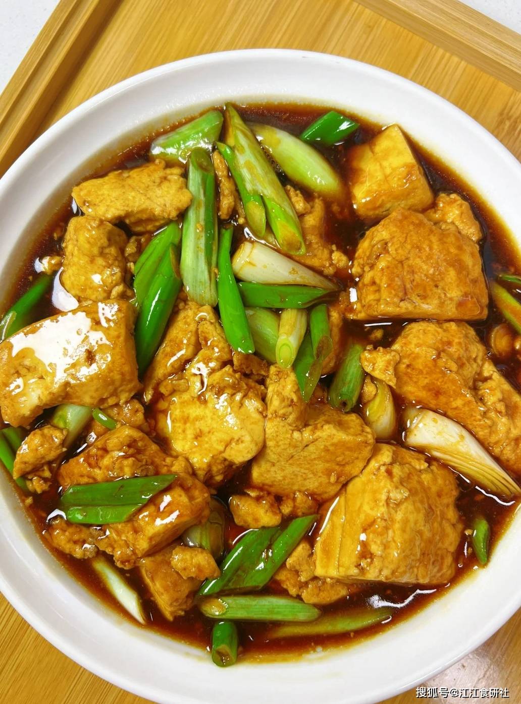 这道葱烧豆腐咸淡适口,豆腐外韧里嫩,大葱的甜香和豆香完美融合。