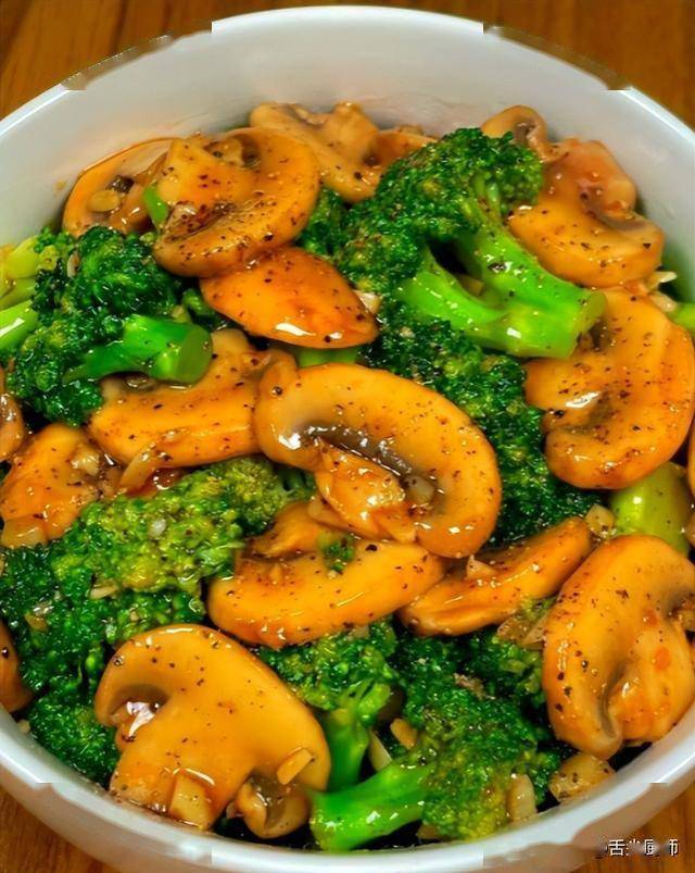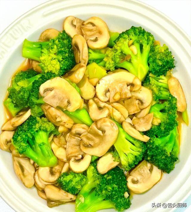 7. 即可享用(西兰花炒口蘑清爽鲜美,适合康复期补充维生素和膳食纤维)。