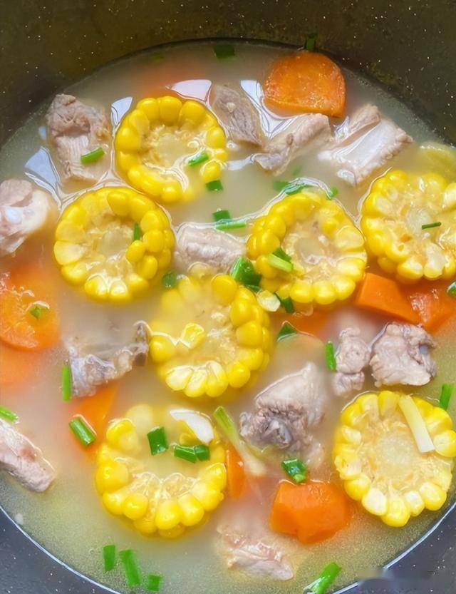 6. 关火后撒上葱花,即可享用(白萝卜玉米排骨汤清润甘甜,适合康复期补充水分和营养)。