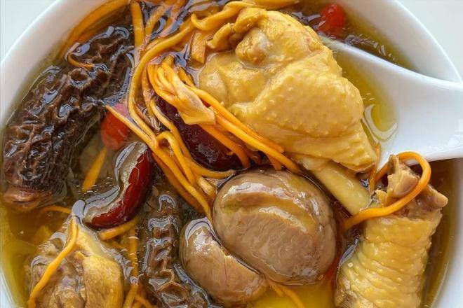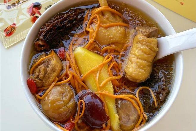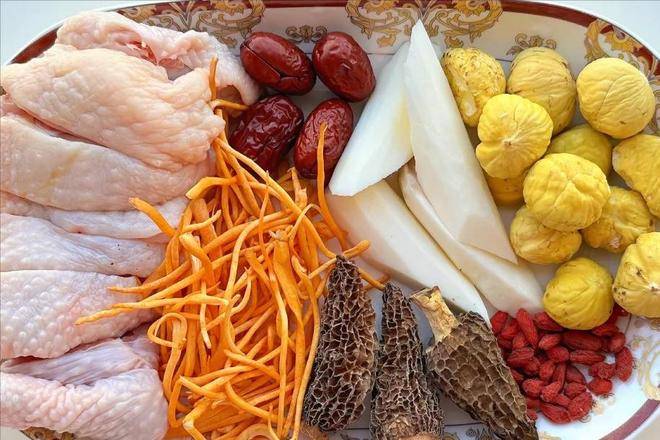 食材:虫草花、板栗、羊肚菌、山药、红枣、枸杞、鸡肉