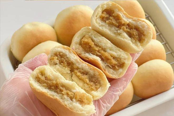 面团材料:中筋粉 400 克、液态黄油 80 克、砂糖 50 克、鲜酵母 12 克、泡打粉 6 克、 170 克水