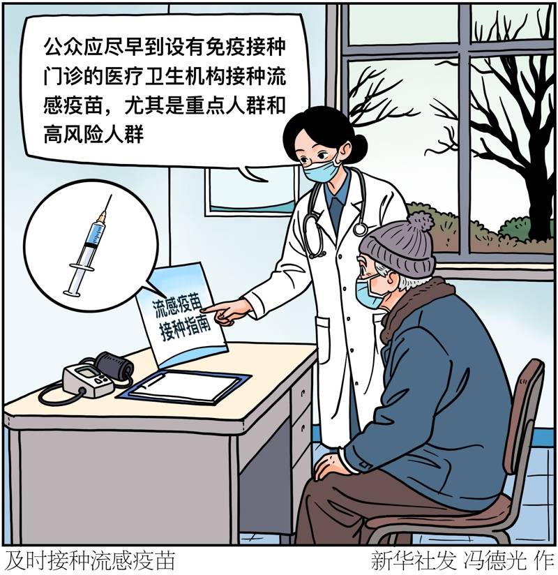 新华社图表,老年人、慢性病患者、儿童、孕妇等应减少在人员密集、空间密闭处的逗留时间,并做好个人健康防护;同时,公众应尽早到设有免疫接种门诊的医疗卫生机构接种流感疫苗,尤其是重点人群和高风险人群。 新华社发 冯德光 作
