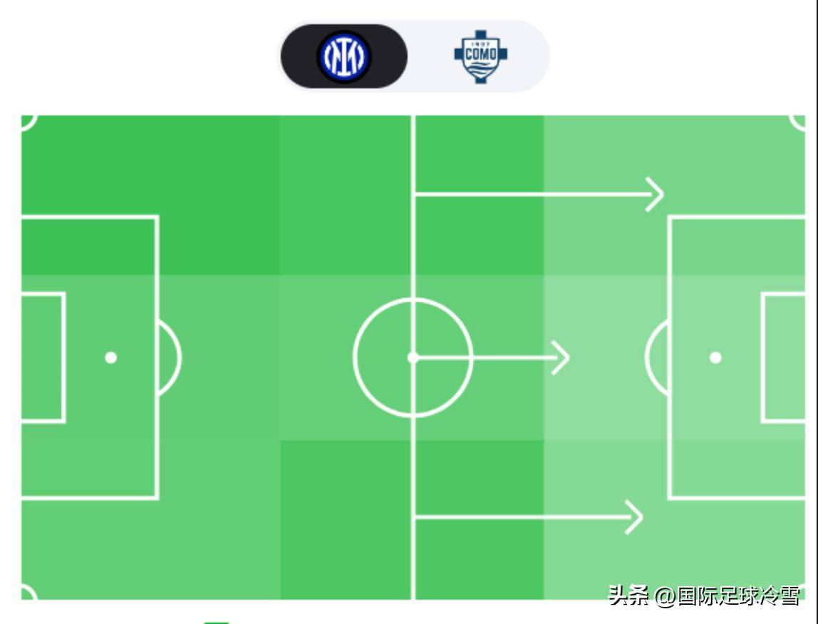 此前,国米的进攻常常依赖左路的进攻和右路的包抄,尤其是通过迪马尔科和巴斯托尼等左路球员。如今,随着新援如迪乌夫、恩里克等的逐渐发挥,国米右路的表现也有所提升。在上轮对阵科莫的比赛中,国米的左路和右路在进攻推进、威胁球传递等方面已呈现出较为均衡的局面。如果国米能够在两条边路都形成威胁,那么他们将更难被对方防守。
