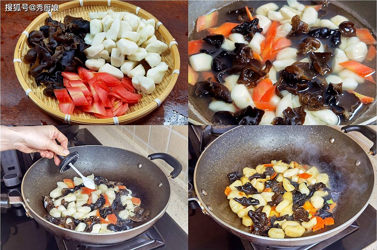 1.准备8-10个马蹄、半根胡萝卜、一小把泡发的黑木耳。马蹄去皮切片,胡萝卜去皮切片,黑木耳洗净撕成小朵。