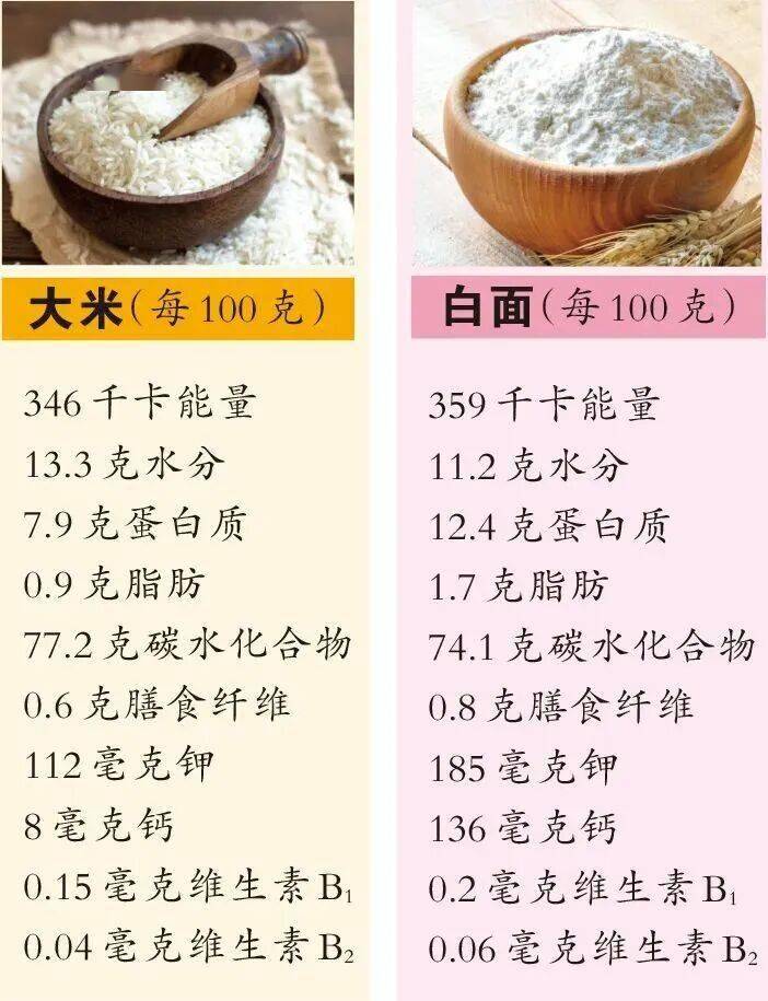 很多人直觉认为“吃面更容易发胖”,但从生米和生面粉的热量来看,二者其实不相上下,每100克大约都在340-350千卡之间。